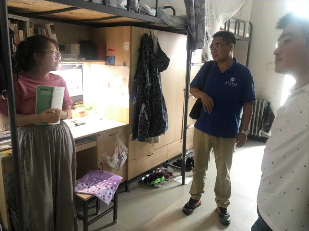 余书记首先来到了学院鄠邑校区的考研自习室,详细了解了留校考研学生的学习、生活情况,对同学们暑期留校积极备考给予了充分的肯定。余书记希望同学们树立信心、坚定目标,注意学习方法、坚持效率,以乐观积极的心态投入到复习中去,争取给自己的大学画一个理想的句号,而这努力的过程更是身体力行给学院的低年级同学起到榜样作用。随后余书记走访了学生宿舍,叮嘱学生注意留校的各项安全问题,希望各位同学劳逸结合、注意身体,并表示学校、学院各级都高度重视留校同学们的学习、生活情况,努力为大家做好后勤服务工作。最后,余书记为留校同学送去了果汁粉,饼干,果冻等防暑慰问品。