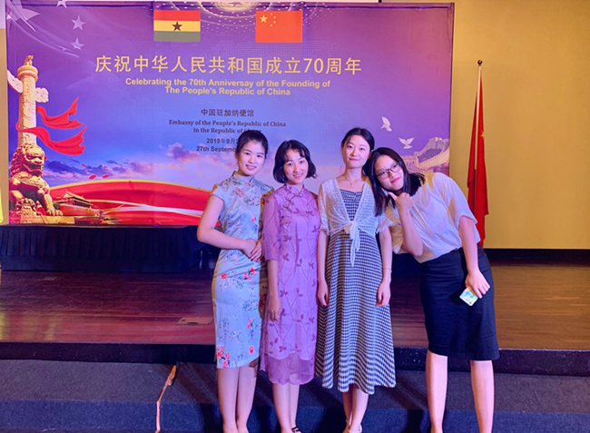 2018级研究生张琳同学作为加纳大学孔子学院汉语教师志愿者参加此次招待会。