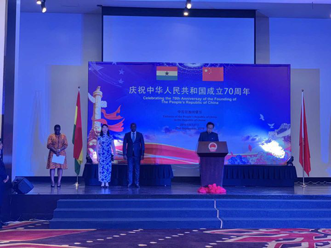 2019年9月27日晚18:30,中国驻加纳大使王世廷偕夫人赵曼在加纳首都阿克拉举行国庆招待会,隆重庆祝中华人民共和国成立70周年。加纳副总统巴武米亚、国防部长尼提乌、大阿克拉省省长阿谢蒂、贸工部副部长阿霍姆卡—林德塞、国土资源部副部长比奥等政府官员、政党、议会高层及社会各界人士,驻加使节、国际和地区组织代表,在加华人华侨和中资机构代表等逾500人出席。乐彩论坛
