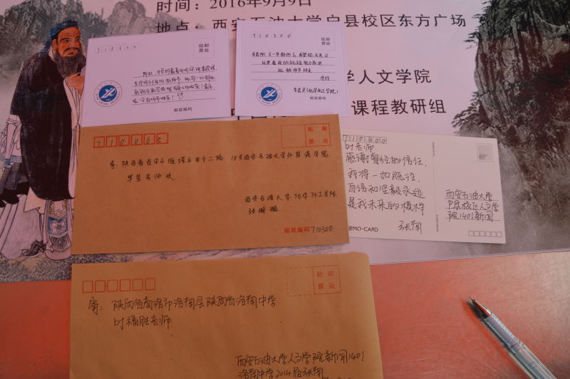 本次活动一共准备了600多张不同内容的卡片,邀请全校学生为喜欢的老师写一段话送出。中文系郭明军老师表示,这次活动主要是为了在教师节来临之际,让学生用传统、非电子通讯的方式给自己敬爱的老师送上一份教师节祝福。