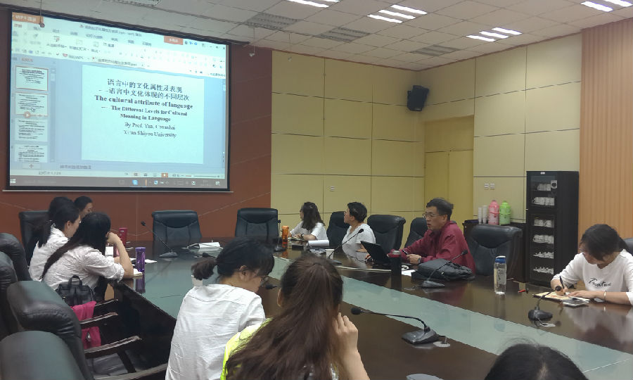讲座中,闫传海教授分别从语言与文化的不可分割性、词语的文化属性和符号性、文化在语言中的体现层次、文化在词汇中的体现意义、文化在句子中的体现、文化在篇章中的体现等几个方面,有针对性地分析了语言中文化体现的不同层次。