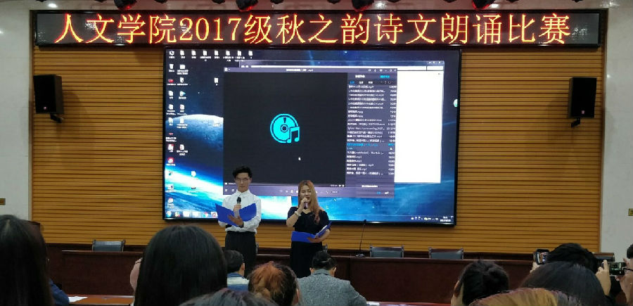 一年一度的“秋之韵”诗文朗诵大赛院级比赛于人文经管楼118室举办。