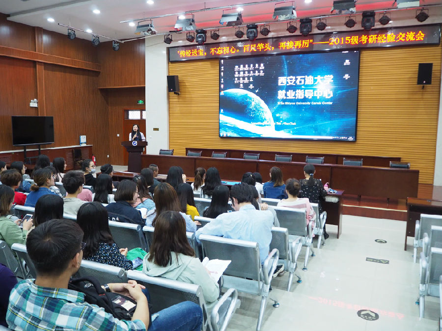 2015级在鄠邑校区人文经管楼118室召开“传经送宝、不忘初心、百尺竿头、再接再厉”考研经验交流会。本次交流会有幸邀请往届五名考入省内高水平院校的校友,来与大家分享备考经历和研究生生活。会议由2015级辅导员付强主持,学院备战2019年考研的100余名同学参会。