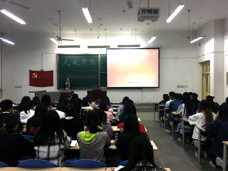 典礼过后,人文院党委书记袁玎正式开始进行第一堂课的讲授,袁书记深入浅出的为学员讲述了什么是政党,政党的本质及产生原因,历史发展和基本特征,同时也为同学们讲述了中国共产党的产生和发展历程,使同学们深入了解了党发展壮大的艰辛历史,对党的性质有了更深刻的认识,也对早日加入中国共产党有了更加强烈的愿望。