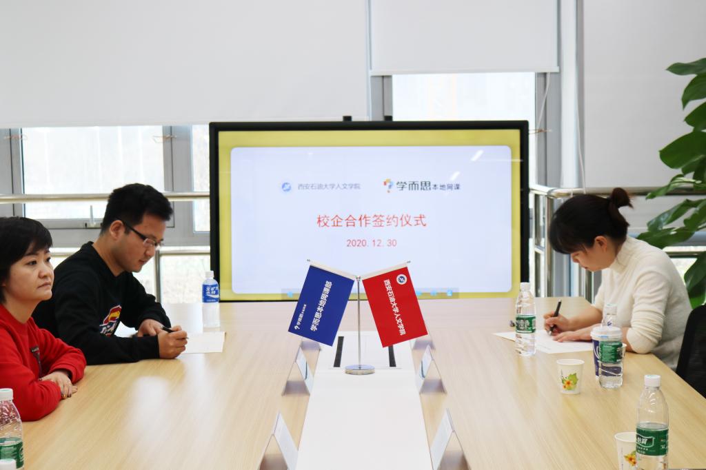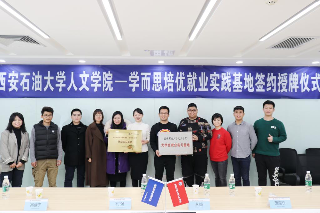 座谈会上,基地选聘负责人刘坦首先为与会人员就好未来集团的发展、学而思培优优势进行了介绍,接着基地负责人刘磊讲述了学而思培优·本地网课的的创办及壮大过程,表达了建立校企合作关系的重要性及必要性。在了解企业的详细情况后,双方代表就公司基本福利待遇、当代毕业生需求、校企今后合作方式等问题进行了探讨,希望能够在下一步工作中多方位开展就业工作,实现校企共同发展。随后,盛丹副书记与刘磊先生分别代表双方单位签订西安石油大学就业实习基地协议,并共同参观了学而思培优·本地网课·西安基地的办公区域,与在职的西安石油大学校友进行了亲切交流。