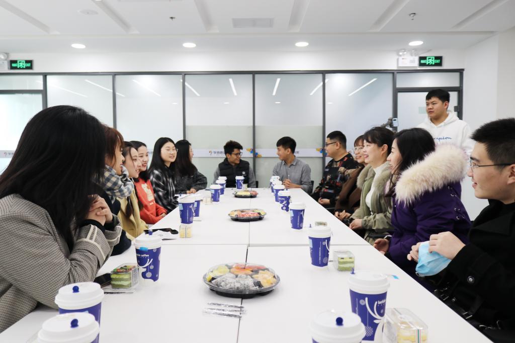 与学而思培优·本地网课就共建实习基地举办了签约仪式。我院党委副书记盛丹、我校就业指导中心高雅宁、我院学工办主任付强及辅导员李峤、范嘉欣作为代表出席了签约仪式。学而思培优·本地网课负责人刘磊、HRBP专家李睿涵、选培负责人马东、选聘负责人刘坦、选聘负责人陈欣、培训负责人罗沛轩、校招负责人刘欣作为公司代表参加此次签约仪式并进行座谈交流。