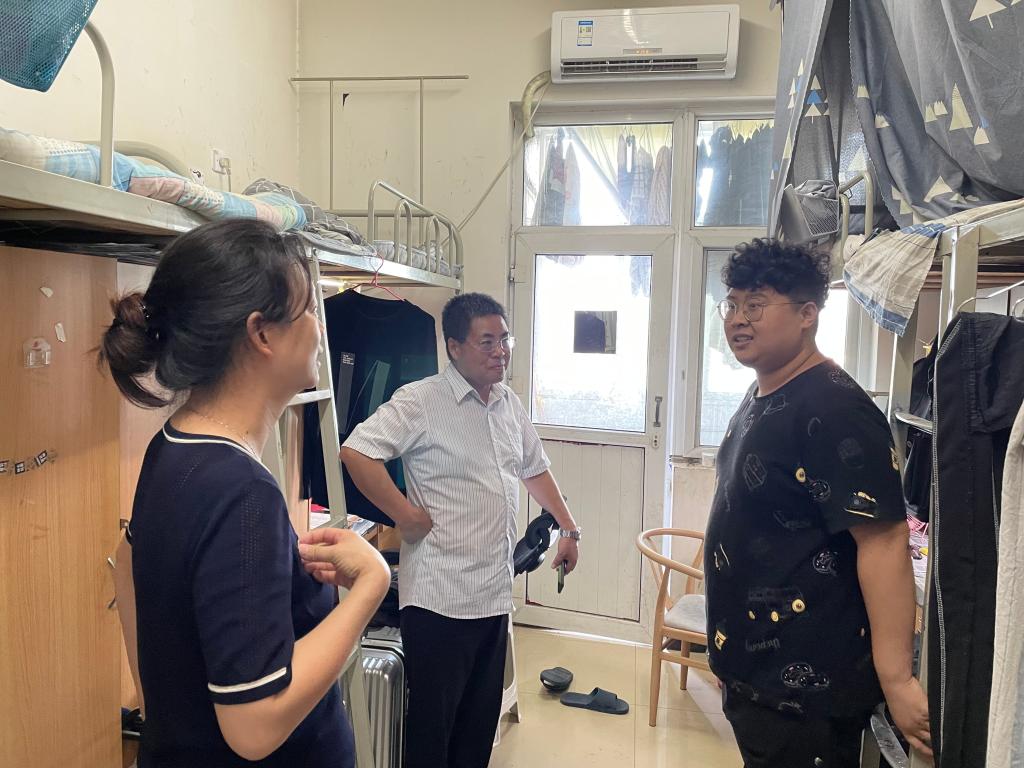 走访期间,余书记与毕业生们展开了亲切交谈,详细询问同学们的毕业去向、就业考研情况及离校准备情况,了解他们的想法和下一步计划,对已经成功升学和顺利签约的同学表示祝贺,希望同学们在新的学习环境和工作岗位上努力作为,取得更好成绩。此外,盛书记认真听取了毕业生的意见建议,叮嘱毕业生们注意离校事项,希望同学们继续关注母校的发展,常回家看看。