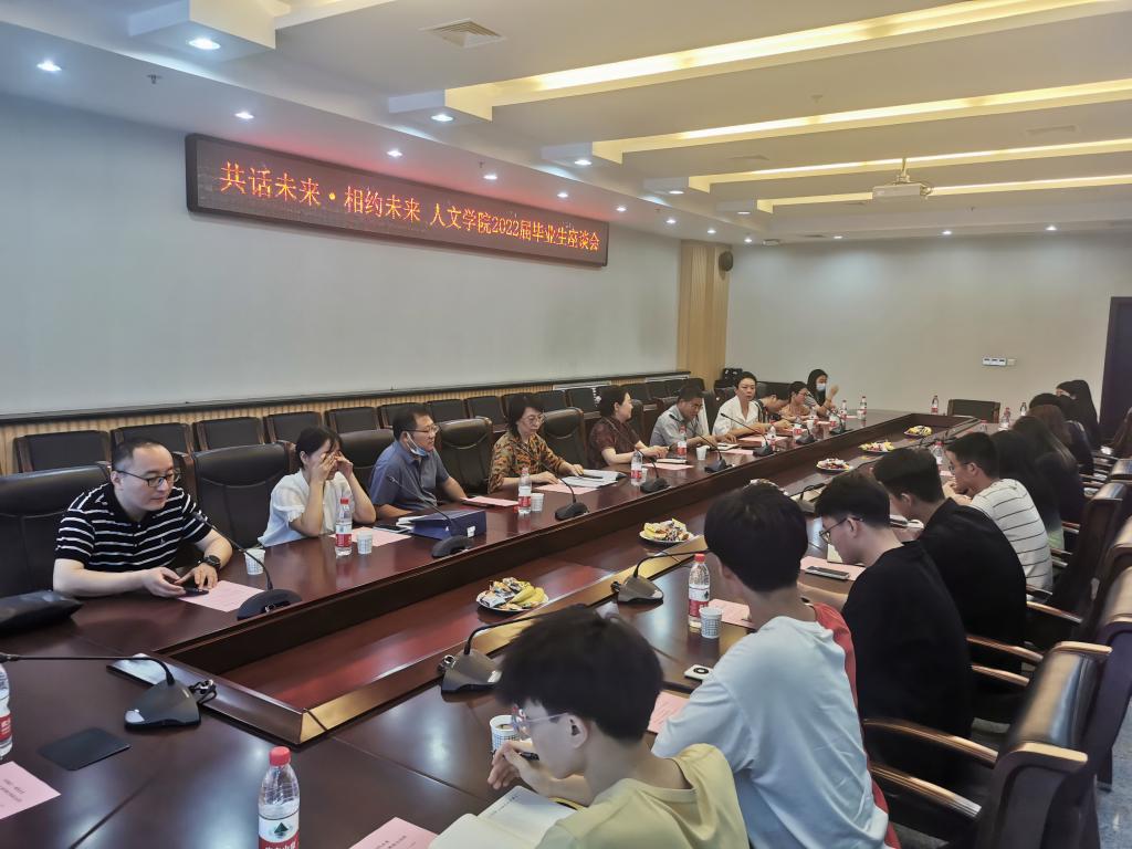 在鄠邑校区图书馆第二会议室举行2022届毕业生“共话成长、相约未来”座谈会。学院党委书记余小勇、院长李涛、副院长方松林和黄庆丰,以及各专业老师出席了座谈会,座谈会由党委副书记盛丹主持,学院12名本科生代表及2名研究生代表参加。