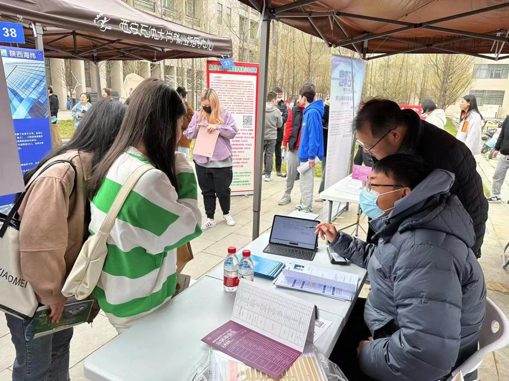 院领导、系主任及学生工作办公室积极组织毕业生在西安石油大学鄠邑校区江汉林广场参加春季综合双选会。