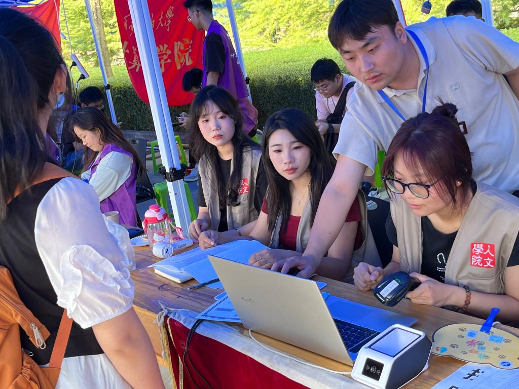 来自全国各地的390名2023级新生陆续来校报到,新同学从此开启大学追梦之旅。迎新工作如火如荼地进行,现场新生、家长、志愿者们热情洋溢,秩序井然。