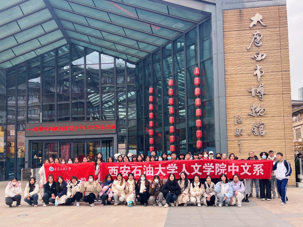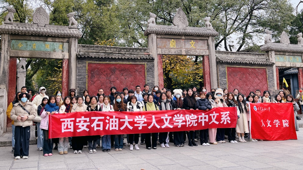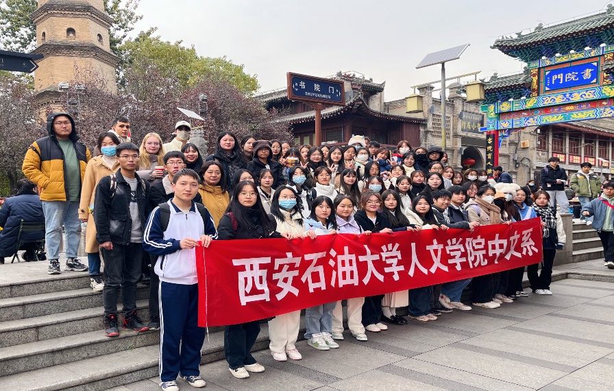 2022级中文专业全体学生及国际交流学院的6位留学生在贺颖、郑莉、张奕3位老师的带领下开展了认知实习活动,参观了西安碑林博物馆、书院门和大唐西市博物馆。