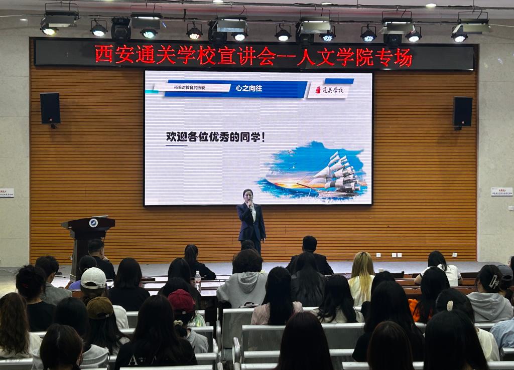 党委副书记盛丹主持,全体辅导员参会,二百余名有申请意向的学生参加。宣讲会旨在加深学生对西安通关学校实习项目的理解,助力大家更好地规划暑期实习。