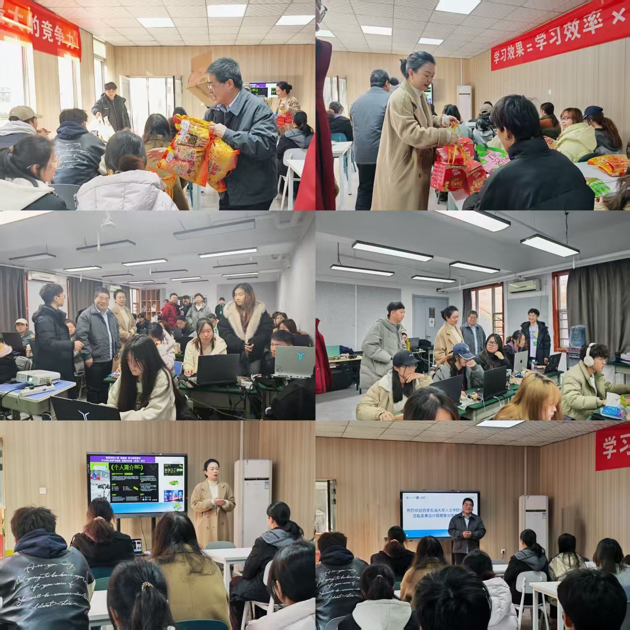参加本期集训营的学生,为学生送去糖果、饼干等慰问品,向学生介绍了集训营优秀学员的大厂实习经历,鼓励学生珍惜学习机会,向优秀学员看齐。