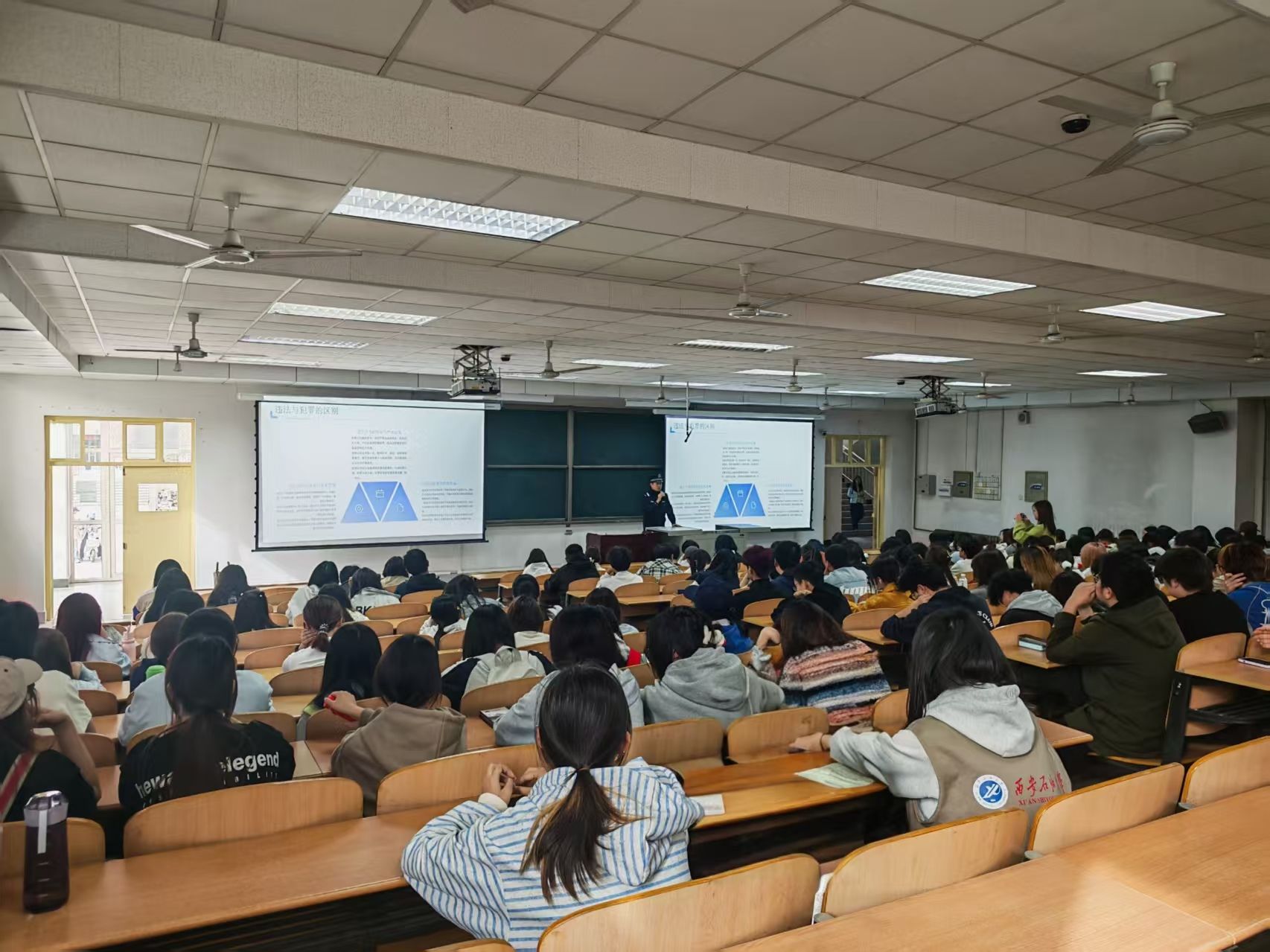 在鄠邑校区博览楼A139教室举办了以“法治进校园——知法守法,安全成长”为主题的安全教育讲座。此次讲座由鄠邑区沣京路派出所民警潘佳乐主讲,乐彩论坛