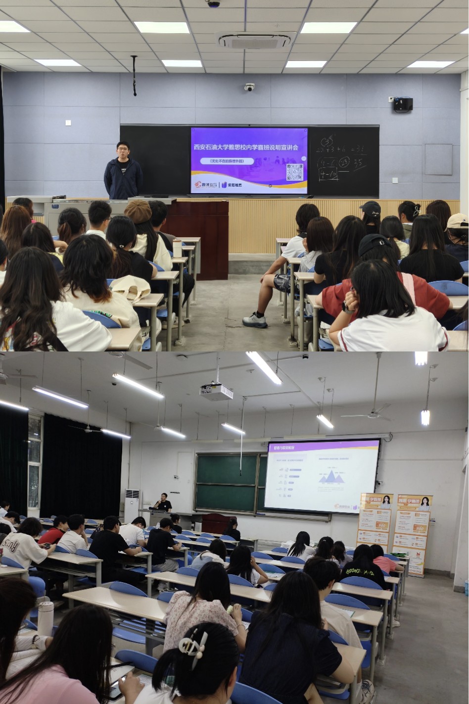 分别在鄠邑校区博览楼A127、博思楼B106举办了“高顿教育紫藤留学讲座”,特邀高顿资深留学规划讲师伏迪,面向2023级、2024级学生解读雅思考试价值及职业规划策略。