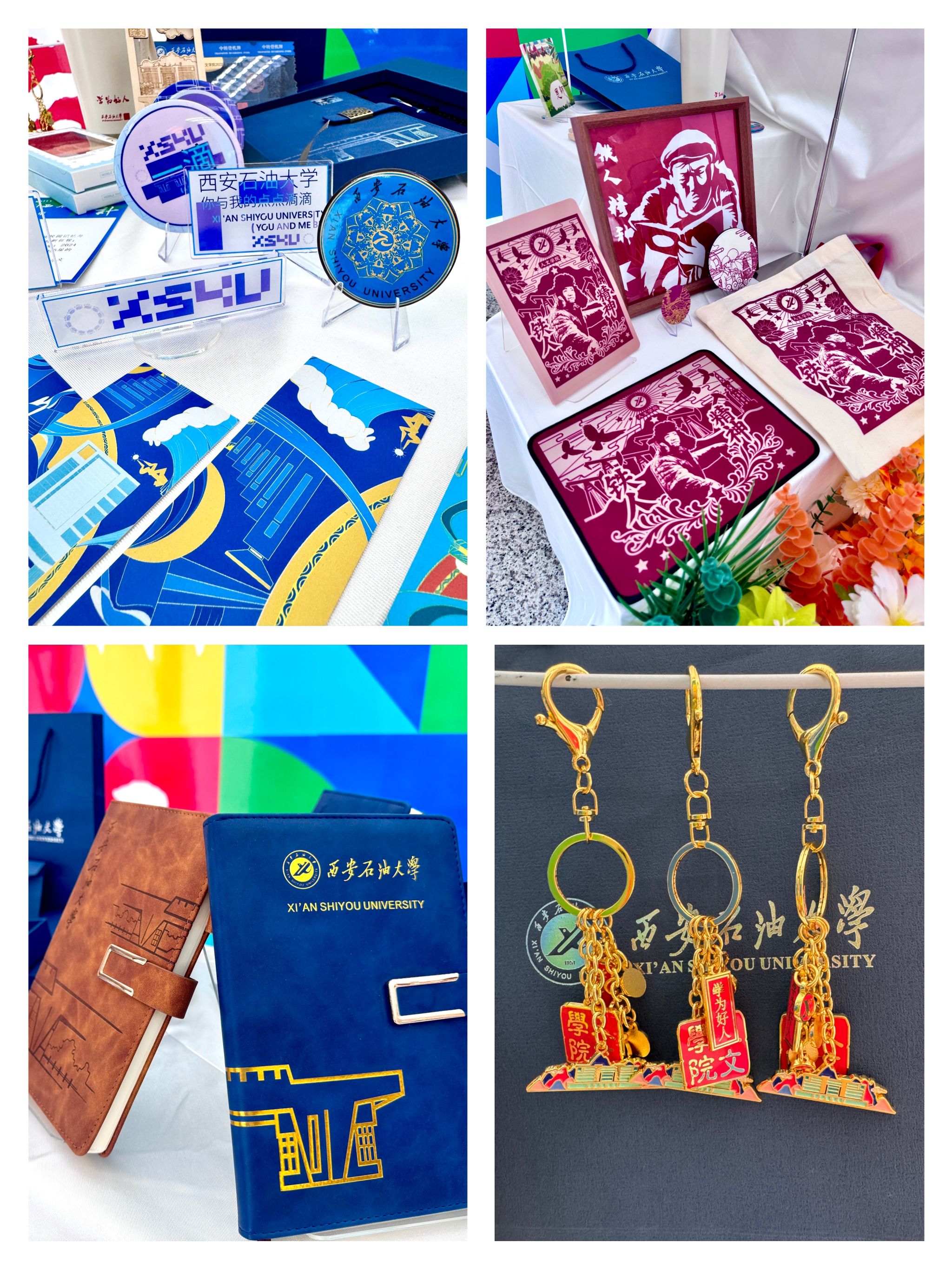 学生精心设计的各类主题文创作品,涵盖学习用品、生活好物、艺术装饰等多个品类。展台上,印有校训、校园风景的定制笔记本、书签、明信片等文具类产品兼具实用性与纪念意义;以学校标志性建筑为灵感的徽章、钥匙扣、帆布包等文创周边,展现了学子对校园的深厚情感;还有学生手绘的原创IP形象衍生品等艺术创作,将西石大的文化底蕴与青春创意完美融合。值得一提的是,许多作品融入了“铁人精神”“石油特色”等学校特有元素,体现了学生们对学校历史与精神的深刻理解,也传递出新时代青年传承校风、为校争光的决心。