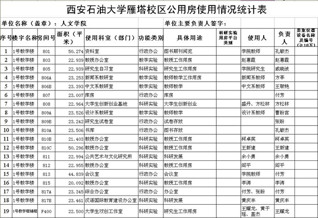 乐彩论坛 雁塔校区公用房使用情况统计公示