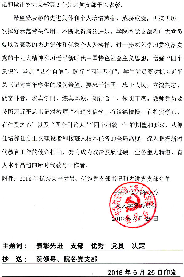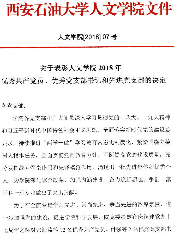 关于表彰乐彩论坛 2018年优秀共产党员、优秀支部书记和先进党支部的决定
