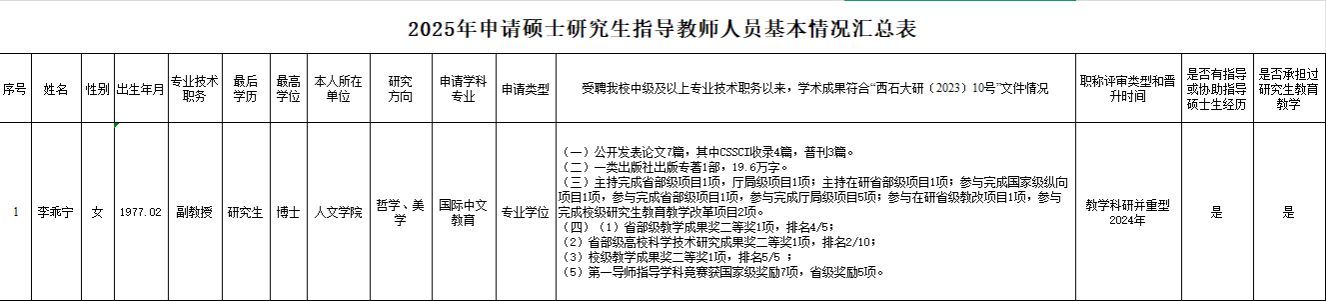 按照学校《关于开展2025年硕士研究生指导教师遴选与认定工作的通知》要求,根据《西安石油大学硕士研究生指导教师遴选与认定办法(试行)》,经乐彩论坛 教授委员会会议表决,一致同意推荐以下老师参加学校2025年度硕士研究生指导教师的遴选与认定。
